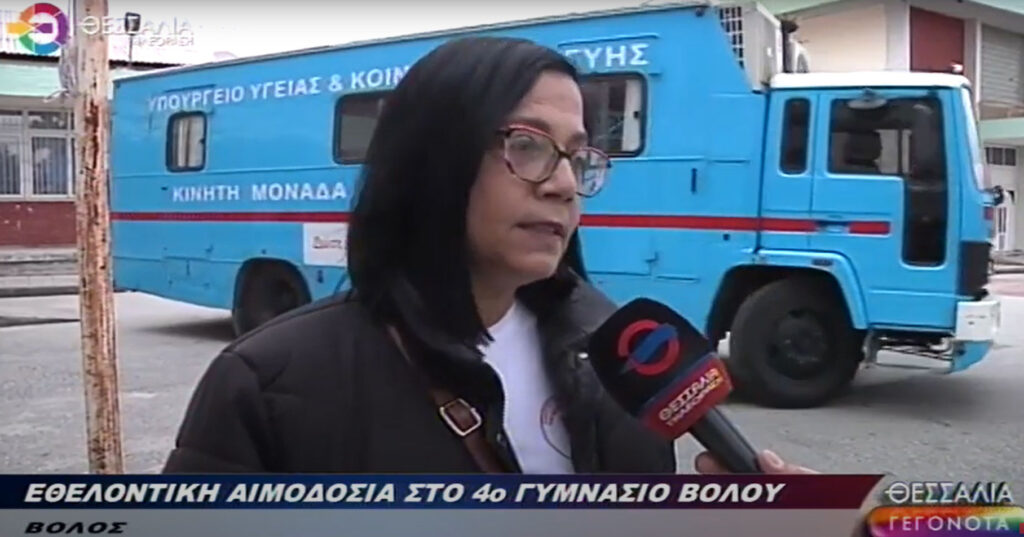 Εθελοντική αιμοδοσία στο 4ο Γυμνάσιο Βόλου 10 Απριλίου, 2023 Ρεπορτάζ του «Thessalia Τηλεόραση» σχετικά με την εθελοντική αιμοδοσία στο 4ο Γυμνάσιο Βόλου στις 06 Απριλίου 2023. Πηγή: thessaliatv.gr