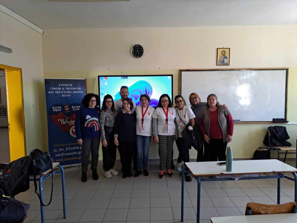 Ο Σύλλογος Θαλασσαιμίας Νομού Μαγνησίας ευχαριστεί θερμά τη Διευθύντρια του ΕΠΑΛ Αγριάς Δρ Βάσσα Παρασκευά για την πρόσκληση να επισκεφτούμε το σχολείο. Την Τετάρτη 6 Μαρτίου η Πρόεδρος και το Δ.Σ. επισκέφτηκε το σχολείο και πραγματοποίησε ενημέρωση στους μαθητές/μαθήτριες της Β τάξης του Τομέα Υγείας σχετικά με τη Θαλασσαιμία, την αντιμετώπιση και την πρόληψη της. Επίσης, αναλύθηκε η σημασία της εθελοντικής προσφοράς αίματος, καθώς η μετάγγιση αποτελεί τη βασική θεραπεία των θαλασσαιμικών πασχόντων. Ευχαριστούμε ειλικρινά τους μαθητές/μαθήτριες για την προσοχή τους αλλά και τη συμμετοχή τους στην πολύ ενδιαφέρουσα συζήτηση που ακολούθησε.