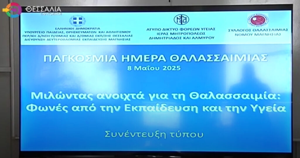 Συνέντευξη τύπου – Δράσεις στο Βόλο για την Παγκόσμια Ημέρα Θαλασσαιμίας 6 Μαΐου, 2025 Συνέντευξη τύπου – Δράσεις στο Βόλο για την Παγκόσμια Ημέρα Θαλασσαιμίας Πηγή: Θεσσαλία Τηλεόραση