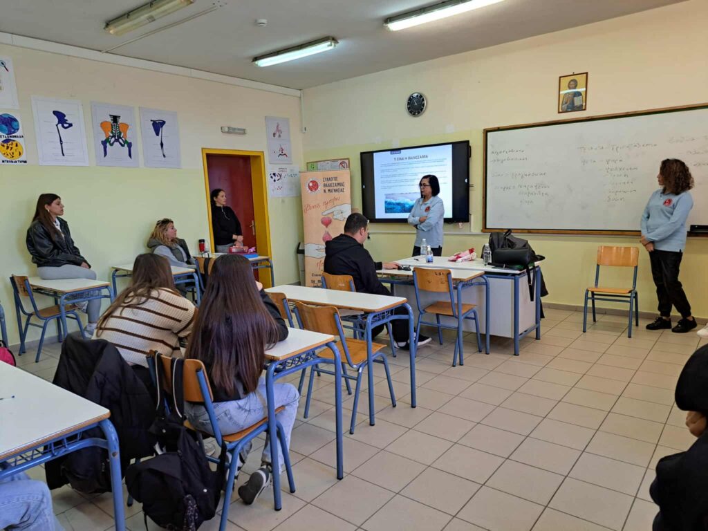 Στο ΕΠΑ.Λ. Αγριάς “ΒΑΓΓΕΛΗΣ ΠΑΠΑΘΑΝΑΣΙΟΥ” πραγματοποιήθηκε επίσκεψη του Δ.Σ. του Συλλόγου Θαλασσαιμίας, τη Δευτέρα 24 Νοεμβρίου. Σκοπό της επίσκεψης ήταν η ενημέρωση και ευαισθητοποίηση των μαθητών/μαθητριών, του Τομέα Υγείας -Πρόνοιας-Ευεξίας με ειδικότητες Βρεφονηπιοκομίας και Φυσικοθεραπείας, της Β και Γ τάξης για τη Θαλασσαιμία και την Αξία της Εθελοντικής Αιμοδοσίας.